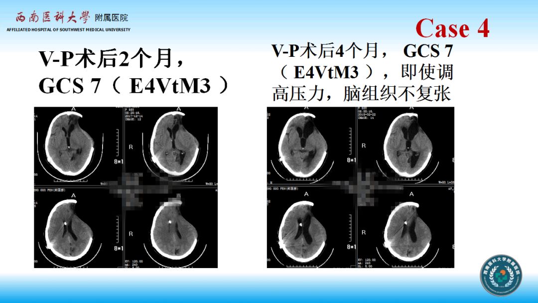 第三例病人,术后长时间处于昏迷状态,分流手术后GCS评分升高,并不能提示病情有实质性改善,正如江基尧教授经常指出的,GCS用于评估伤情,但不能准确判断意识状况,GCS大于8分,不等于病人清醒,也可能处于植物状态。
