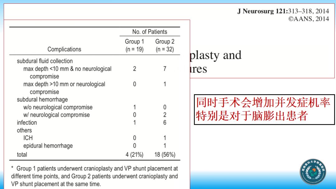 因此,我们不主张同期行V-P分流和颅骨修补术。请广大同行批评指正。