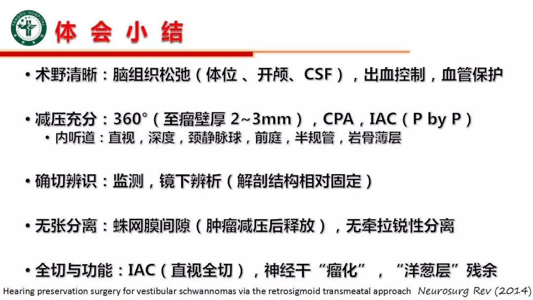 今日与大家分享的是《正海-妙术视界》第一百〇一期,由唐都医院神经外科主任屈延教授带来的精彩病例:“前庭神经鞘瘤面听功能保护体会”,欢迎观看、分享。