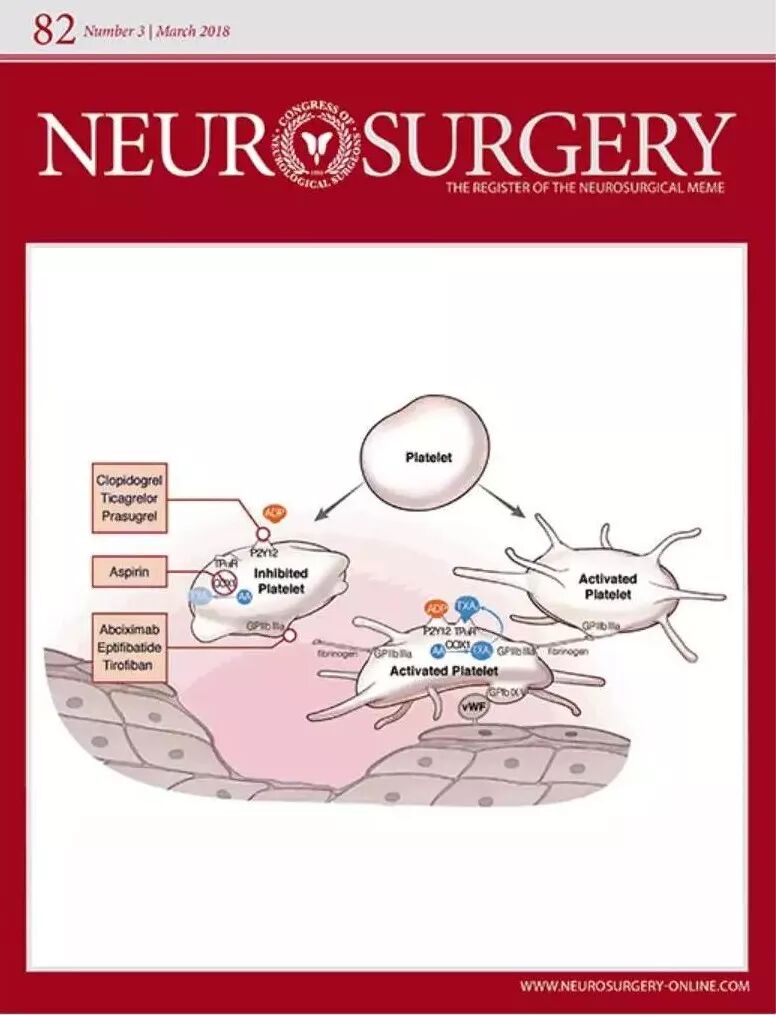 血栓栓塞并发症是颅内动脉瘤栓塞治疗时常见的严重并发症,目前主要以肝素化和口服抗血小板治疗为主。GPI能抑制血小板聚集,最初用于心血管疾病。目前多项研究评价了GPI(阿昔单抗,依替巴肽和替罗非班)治疗颅内动脉瘤栓塞时血栓栓塞并发症的安全性和有效性。同时有研究表明预防性使用GPI,在颅内血管支架植入、动脉瘤栓塞中有缺血保护作用。这篇文章通过对以往文献进行回顾性评价,推荐了GPI药物在颅内动脉瘤栓塞治疗时的使用方法:阿昔单抗用于挽救性治疗时首次剂量0.25mg/kg(IA or IV),持续给药0.125 μg/kg/min (12 h),预防性治疗时一次给药0.125 mg/kg (IV);依替巴肽用于挽救性治疗时首次给药90 μg/kg (IA),持续给药0.5 μg/kg/min (12 h),预防性治疗时一次给药180μg/kg;替罗非班在挽救性治疗时,首次给药4 μg/kg(IA),最大为25μg/kg,持续给药为0.1μg/kg/min (12 h),在支架辅助栓塞时以0.1μg/kg/min(12 h)给药,而在植入血流导向装置时以0.1μg/kg/min (2 h)给药。【严贵忠】