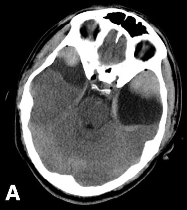 作者认为,双侧颞部蛛网膜囊肿同时发生创伤性双侧硬膜外血肿的病例未曾报道。该病例提示,对于无症状的蛛网膜囊肿患者必须对其进行因囊肿的解剖改变存在潜在风险的教育警示,提醒避免容易伤及头部的对抗性体育活动或服兵役。