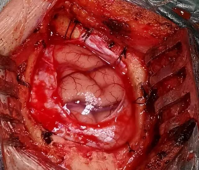 脑组织、颞底或Labbe静脉损伤是硬脑膜下入路的另外一个神经外科医生顾虑因素。实际上,开颅时骨瓣2/3保持在位于外耳孔前方,Labbe静脉就多位于骨瓣后缘,损伤概率很低。颞底引流静脉如果进入颅底硬脑膜,可以连同颅底硬脑膜一并分离,如果肿瘤体积较大,术前腰穿置管,切开硬脑膜后,释放脑脊液30-40ml,就能明显降低颅内压,从而更好地保护脑组织。