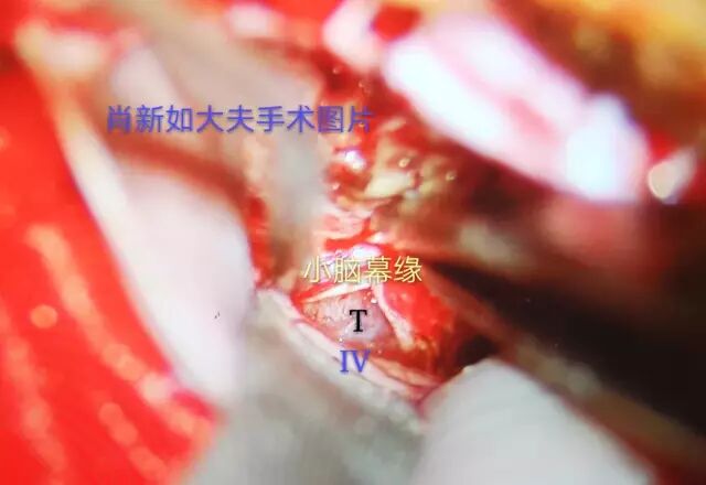先于滑车神经(IV)进入小脑幕的后方切开小脑幕,释放脑脊液,降低颅内压。