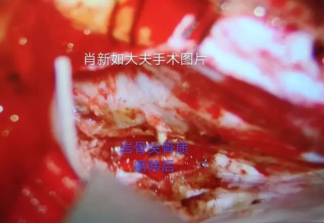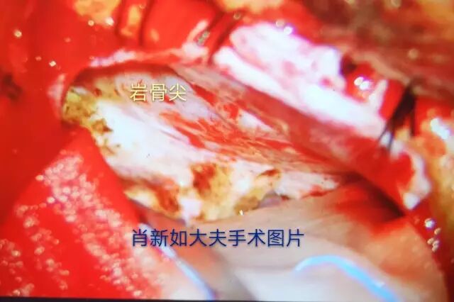 暴露岩骨尖,切开表面硬脑膜,磨除岩骨尖骨质。