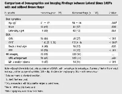作者认为,窦静脉区DAVFs患者,窦静脉区血液流出受限(SOR)与皮质静脉回流(CVR)相比,更具有预测脑实质内出血的价值。
