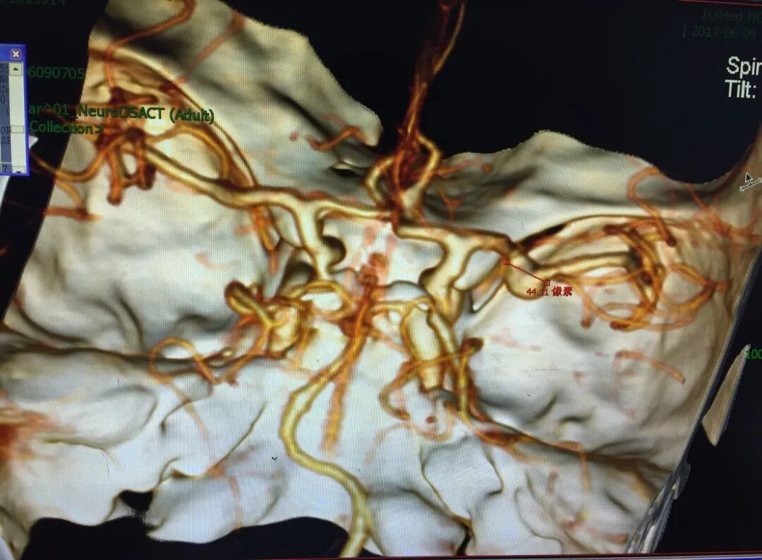 介入栓塞:载瘤动脉较迂曲,可能会闭塞载瘤动脉的穿支血管引起脑梗塞,费用高昂。家属最后选择开颅显微夹闭术。