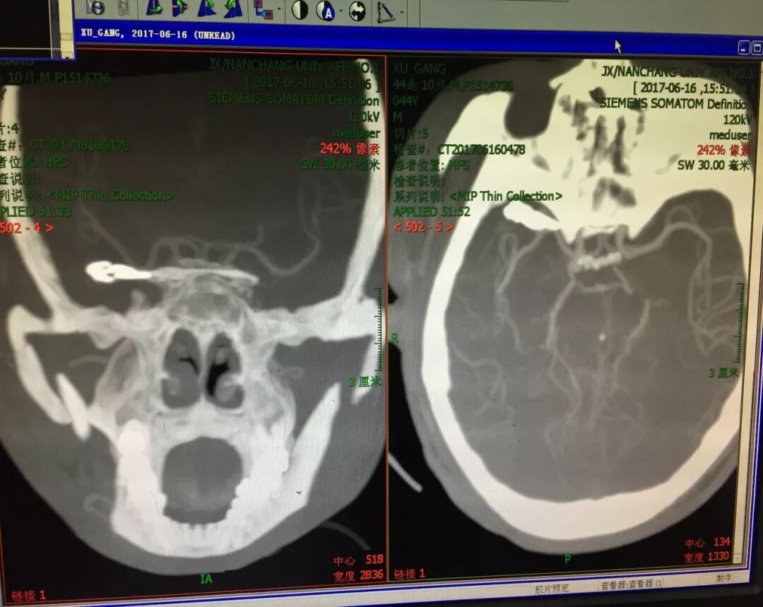 在家属同意手术后,我们向家属介绍了两种手术方式包括开颅显微夹闭术和血管内介入治疗,以及两种手术方式的利弊。家属经过慎重考虑,决定行开颅显微夹闭术。