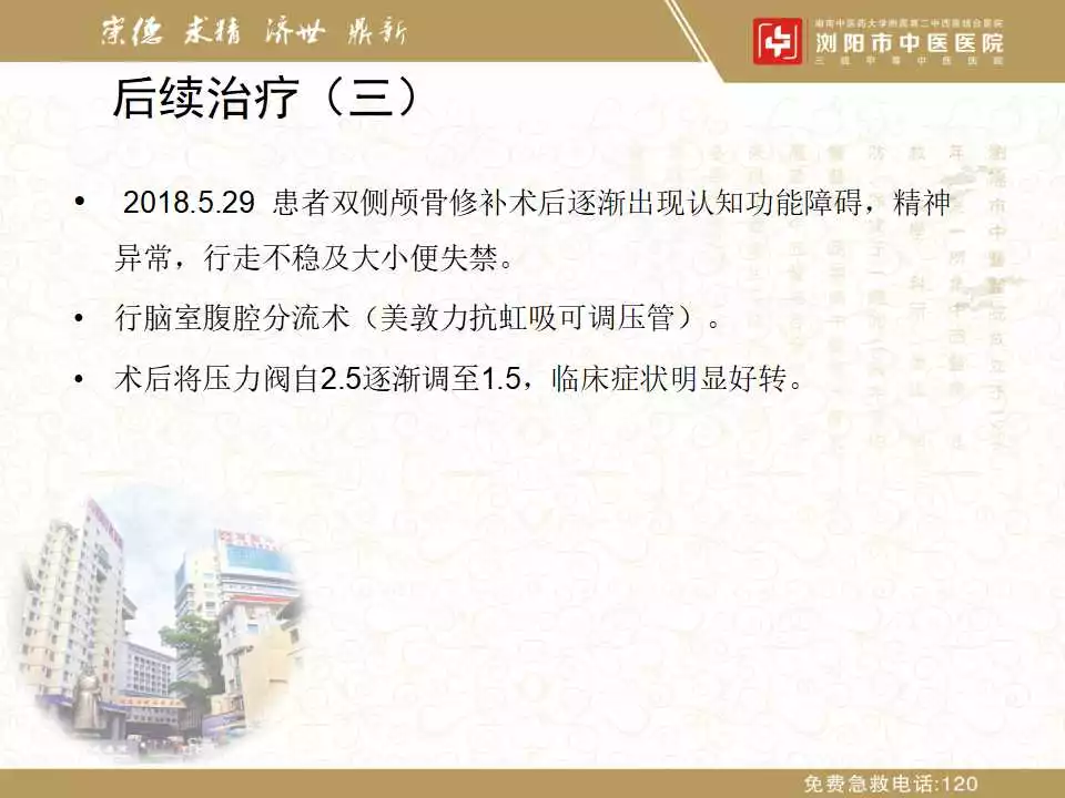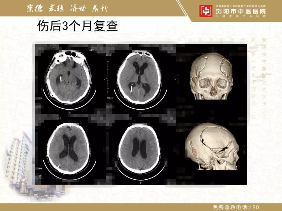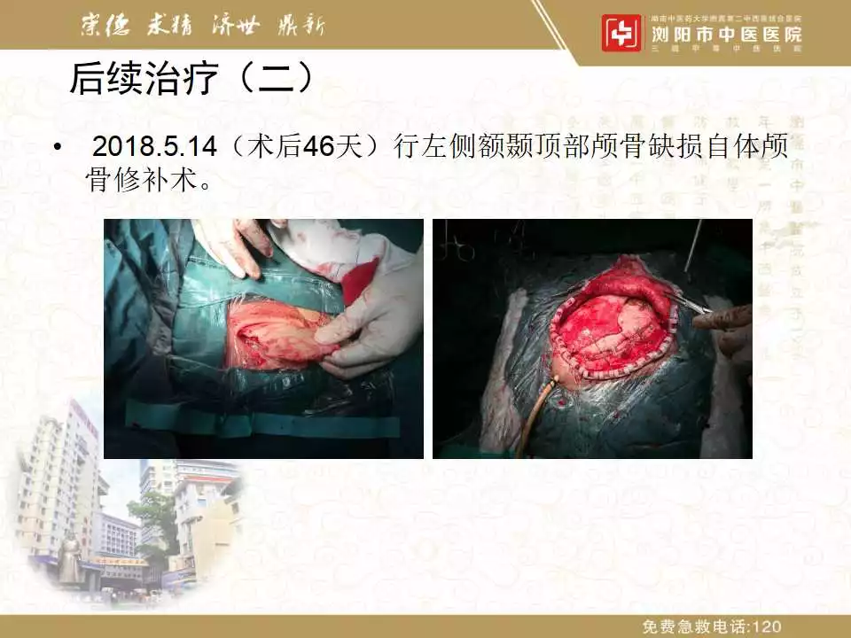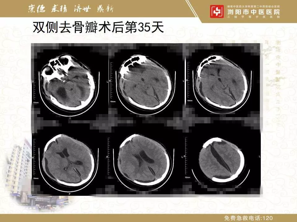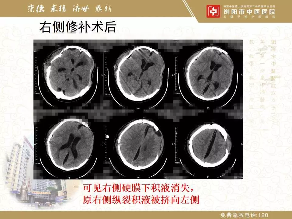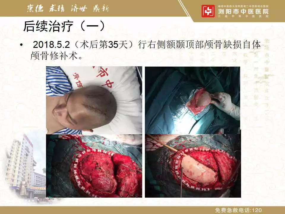 4. 该病例手术后都采用了自体颅骨腹壁寄养之后回植颅骨修补的方法,对于这例年轻脑外伤病人,减少了今后日常生活中的客观不便及心理影响,这是最值得点赞的亮点。
