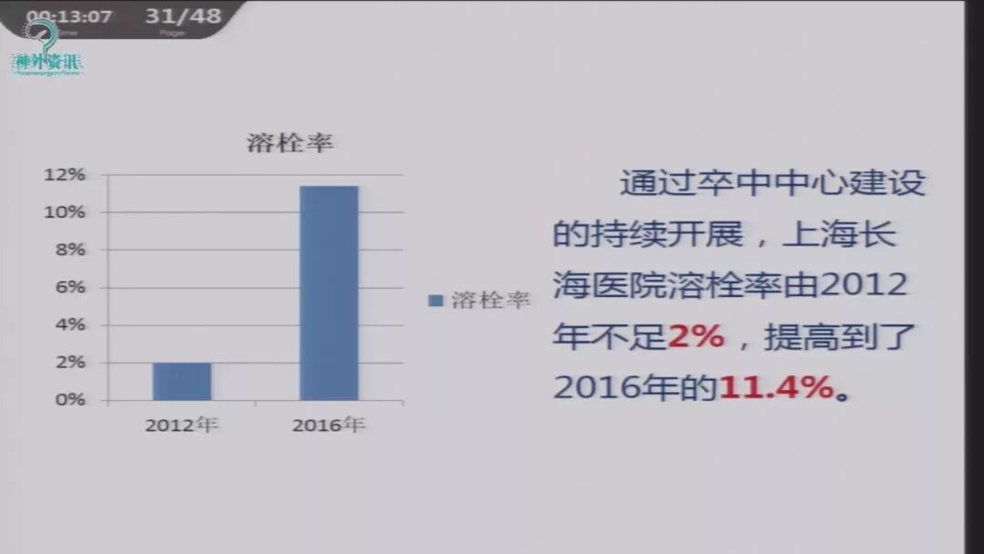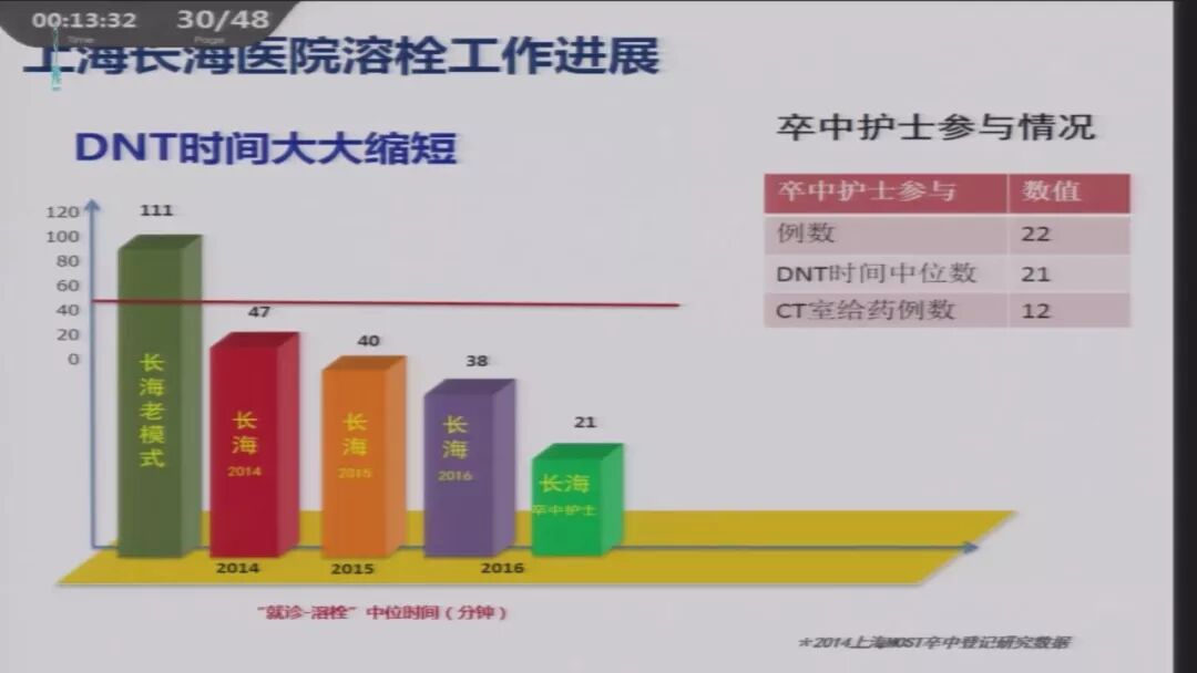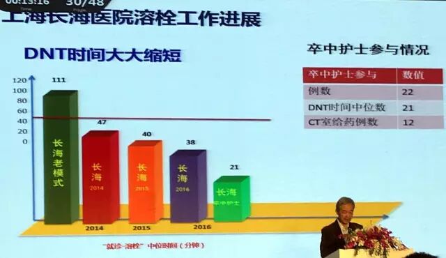 通过卒中中心建设,长海医院溶栓率由2012年不足2%,提高到2016年的11.4%。DNT时间快速缩短。