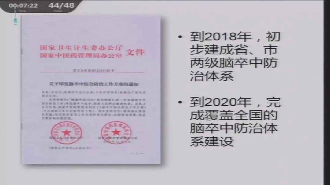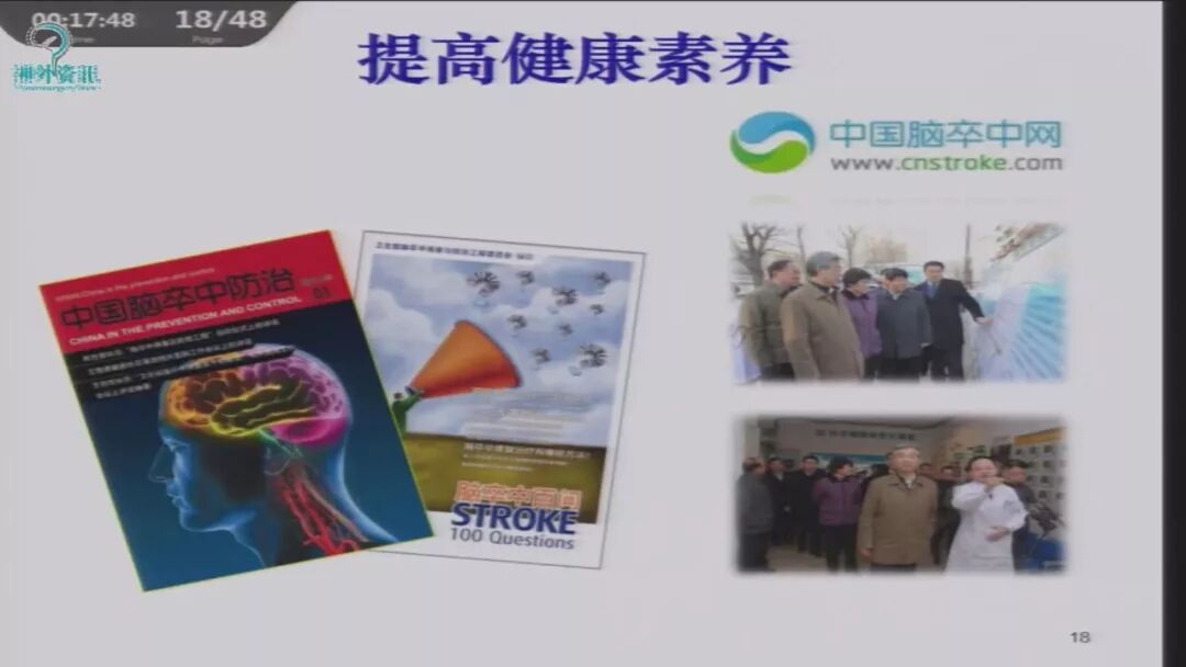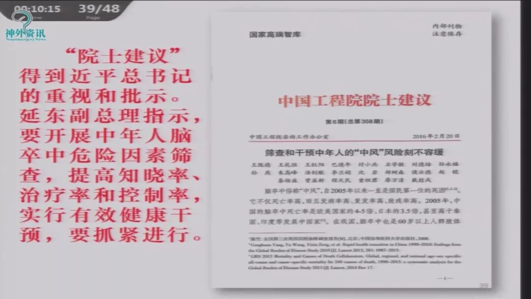 院士的建议“筛查和干预中年人的中风风险刻不容缓”,得到习主席的重视与批示。刘延东副总理指示,要开展中年人脑卒中危险因素筛查,提高知晓率、治疗率和控制率,实行有效健康干预,要抓紧进行。
