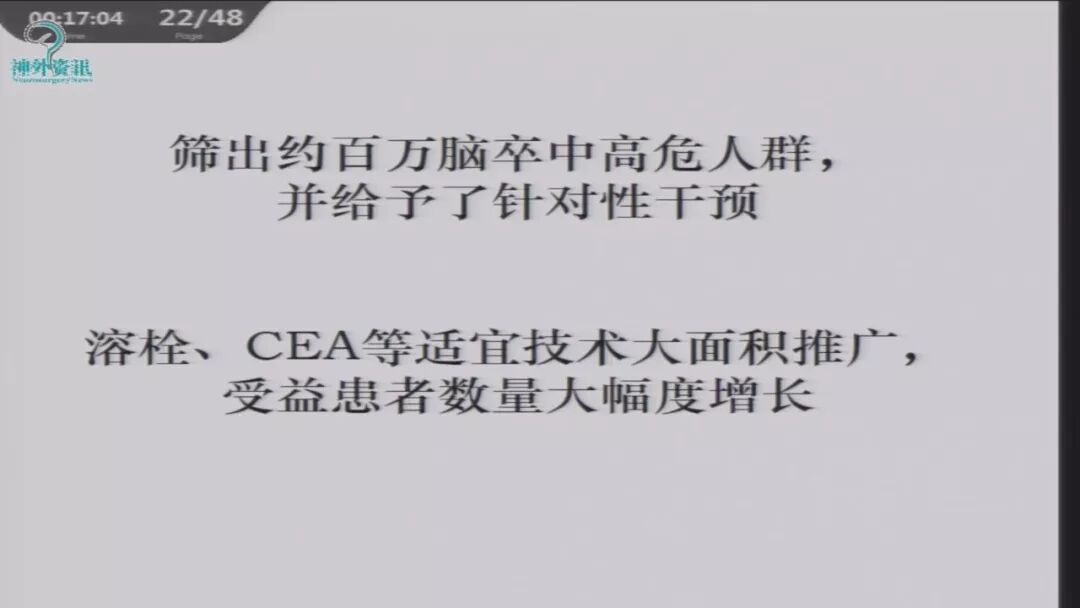 卒中筛查:筛出约百万卒中高危人群,并给予针对性干预。溶栓、CEA等适宜技术大面积推广,受益患者数量大幅度增长。