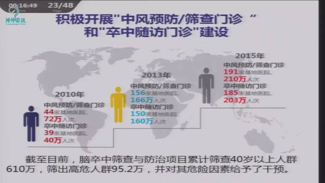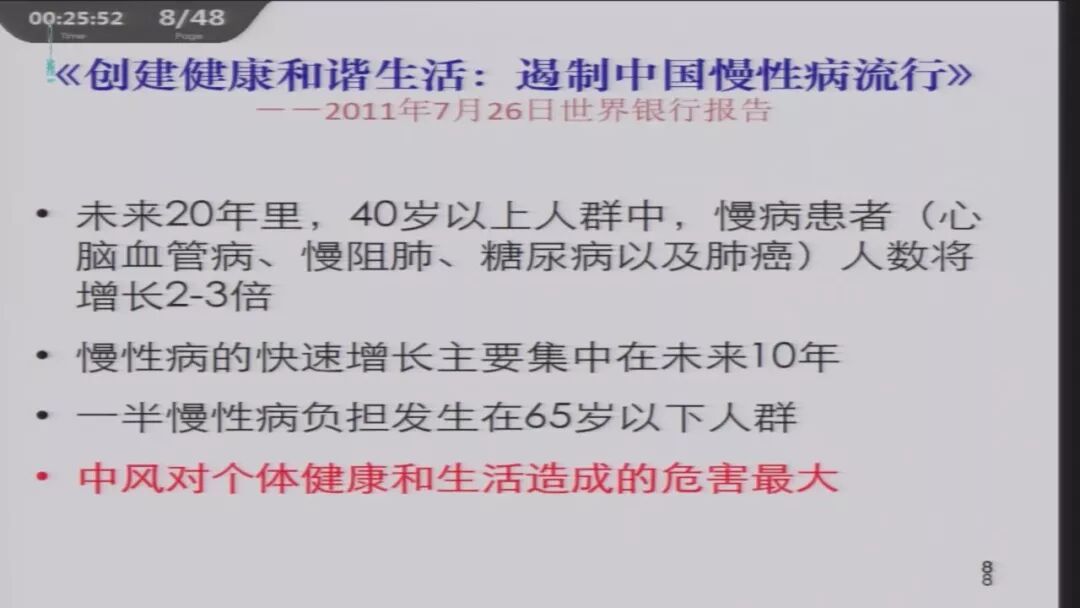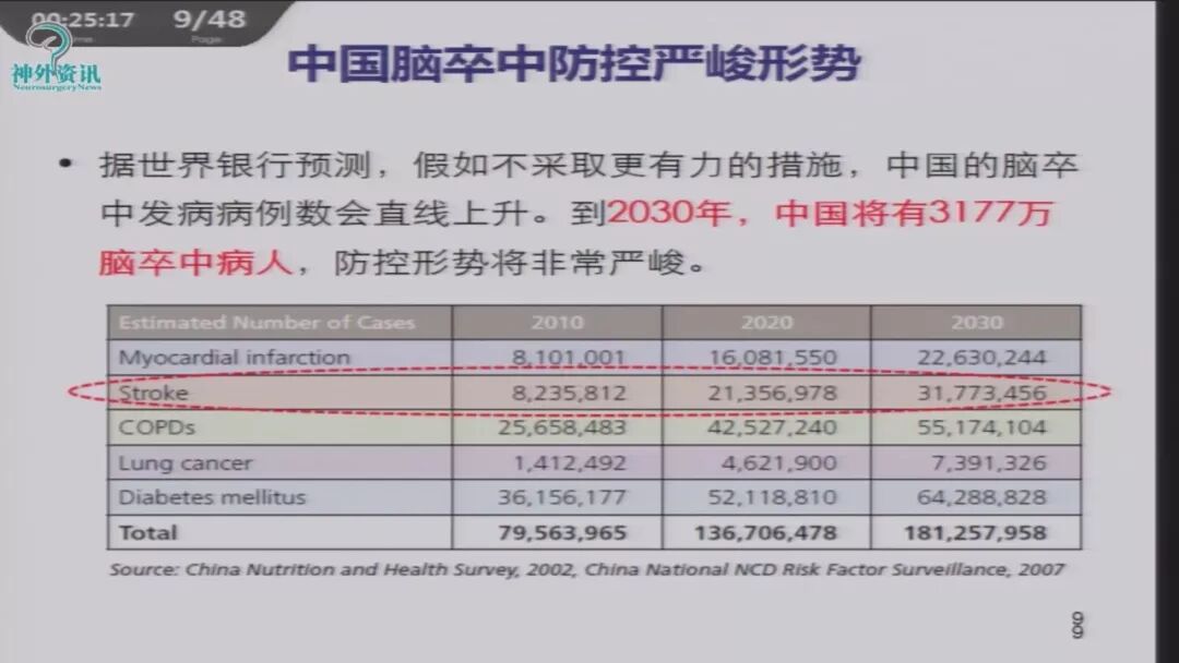 中国脑卒中防控严峻形势:据世界银行预测,假如不采取更有力的措施,中国的卒中发病病例会直线上升,到2030年中国将有3177万卒中病人。