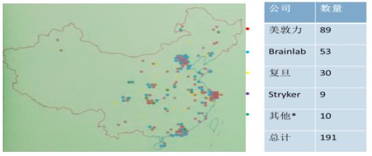 另外,在中国市场上,复旦大学附属华山医院神经外科于1997年9月引进了第一台美敦力的StealthStation神经导航系统,开启了中国神经导航系统的市场之门。虽然国内神经导航市场起步较晚,但市场潜力巨大。随各大医院的经济基础和技术力量的提升,至2012年底,已经拥有191台导航系统,主要集中在北京,上海,广州及沿海发达地区。根据加拿大NDI公司预测,国内神经导航系统市场容量将达500台左右。