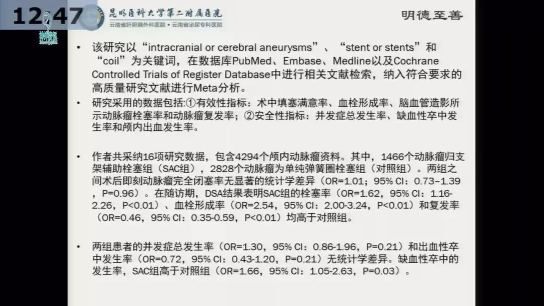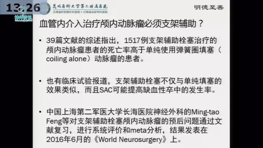 今天为大家分享的是由昆明医科大学第二附属医院曹毅教授在四川省医学会第十二次介入医学学术暨西南神经介入高峰会议上带来的“LVIS支架辅助栓塞颅内动脉瘤”精彩讲课视频和PPT,欢迎观看!(内容未经讲者审核,不当之处请与我们联系)