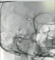 患者女,27岁,6月前因癫痫发作,头晕,经DSA检查诊断为、右侧颞叶脑动静脉畸形,行动静脉畸形部分栓塞术。
