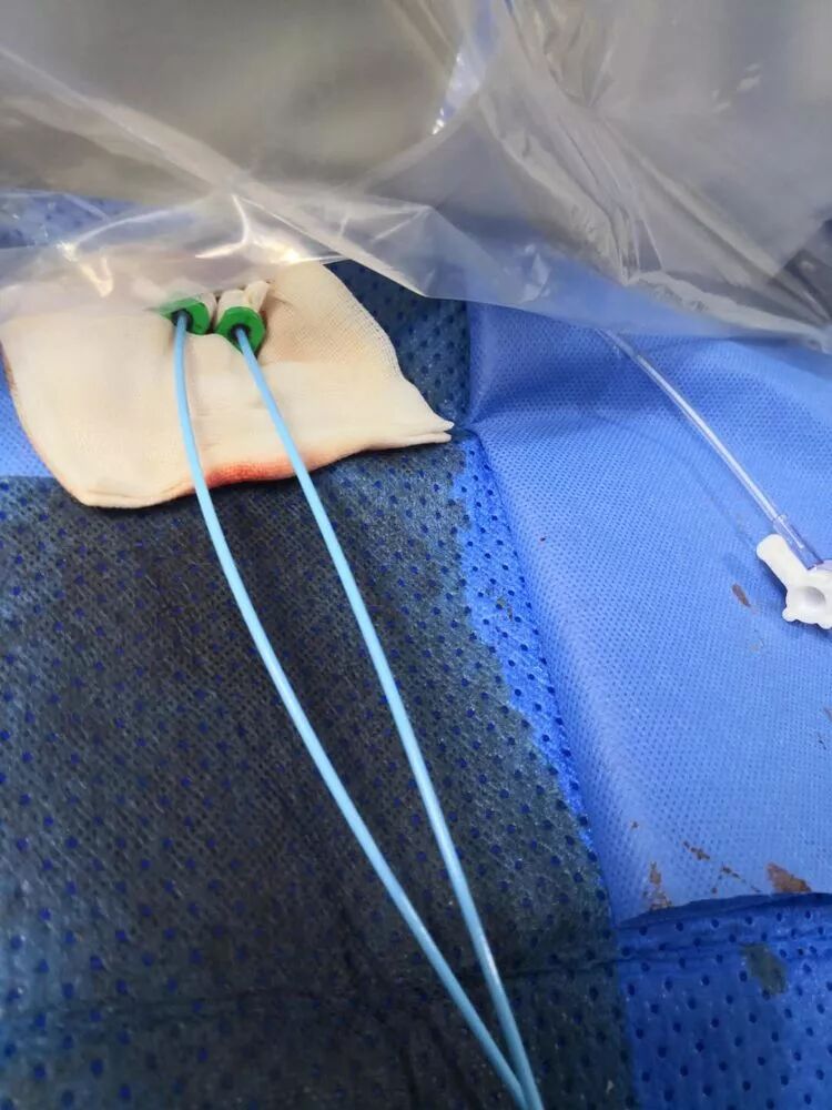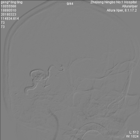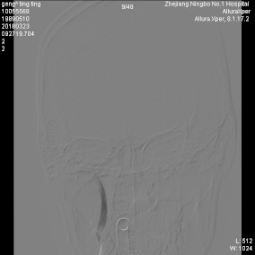 经静脉及动脉依次注射ONYX18约4ml,注胶时,球囊的阻断起到了关键作用(高压锅技术)。