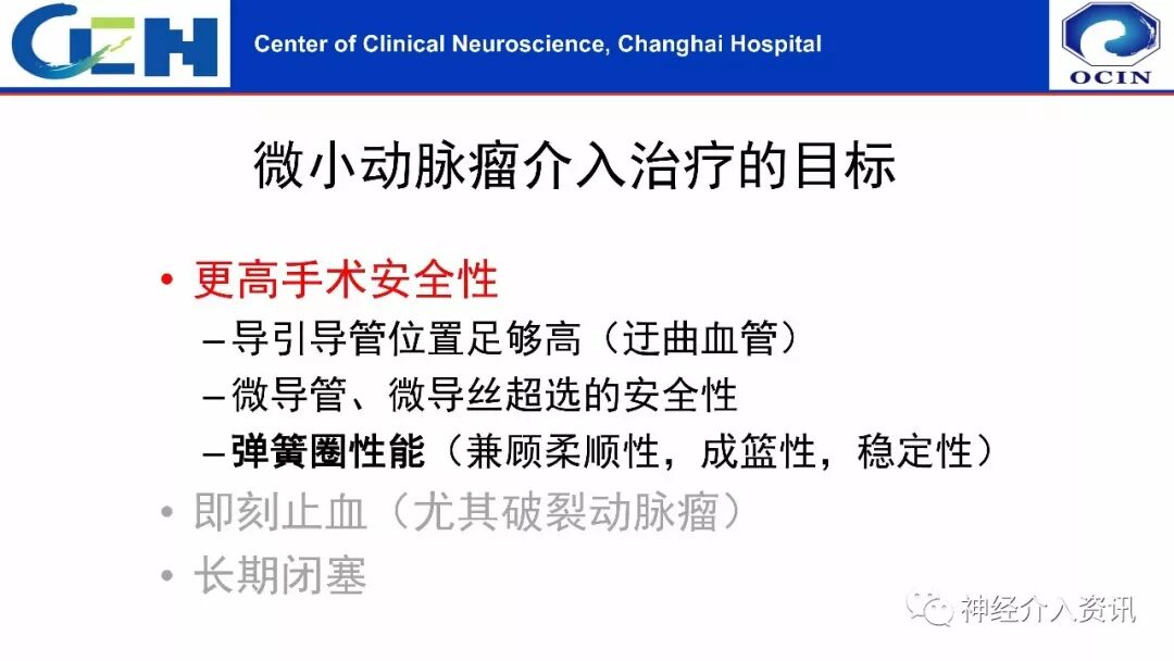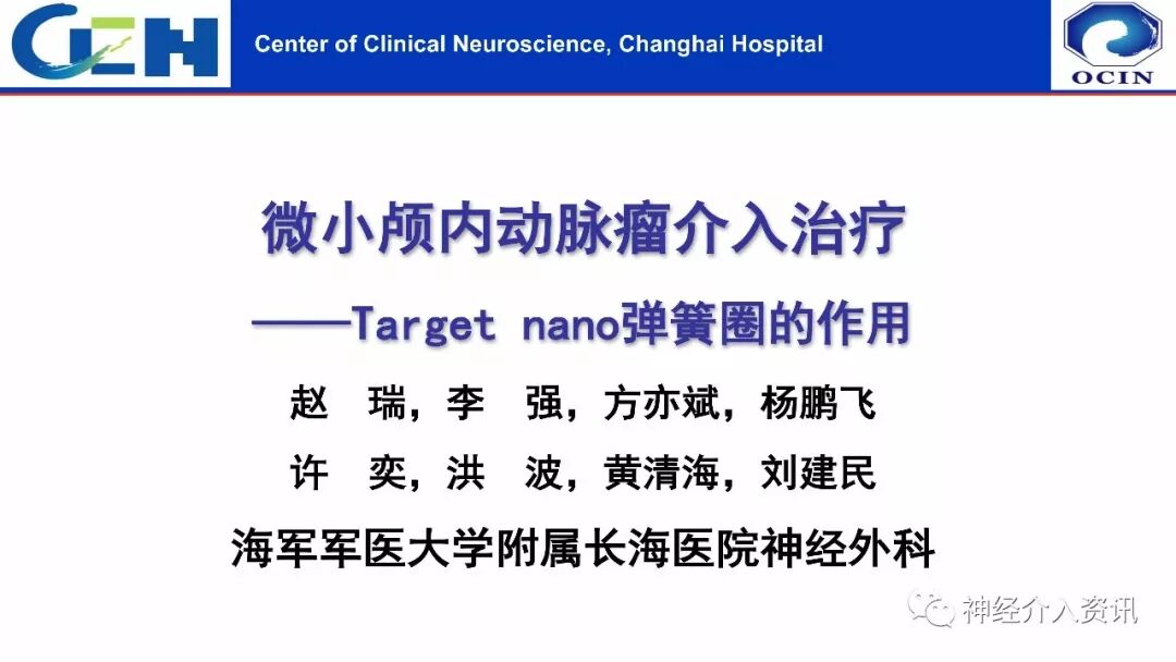 今天为大家分享的是由上海长海医院赵瑞教授在第十二届华东地区脑血管病血管内治疗大会上带来的“微小颅内动脉瘤介入治疗:Target nano弹簧圈的作用”精彩讲课视频和PPT,欢迎观看!(内容未经讲者审核,不当之处请与我们联系)