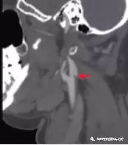 颈动脉蹼的特征非常显著,与“蹼”这个名词相关,只是这里发生在颈动脉,而非手指与脚趾,通过影像学检查而获得明确诊断非常容易。彩超上可见颈动脉管腔狭窄或漂浮的薄膜,CTA轴位表现为薄层隔膜,矢状切面表现为沿着颈动脉球后壁腔内薄层充盈缺损,超过颈动脉分叉处;DSA显示最清晰,颈内动脉后壁薄膜样突起、造影剂排空延迟。