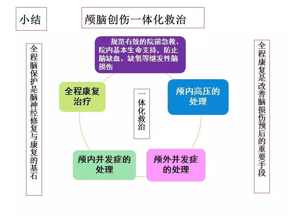 总之,神经创伤的一体化救治应当是我们日常工作中反复实践的常规,而重型颅脑创伤患者的治疗是一项系统工程,同道们任重而道远。