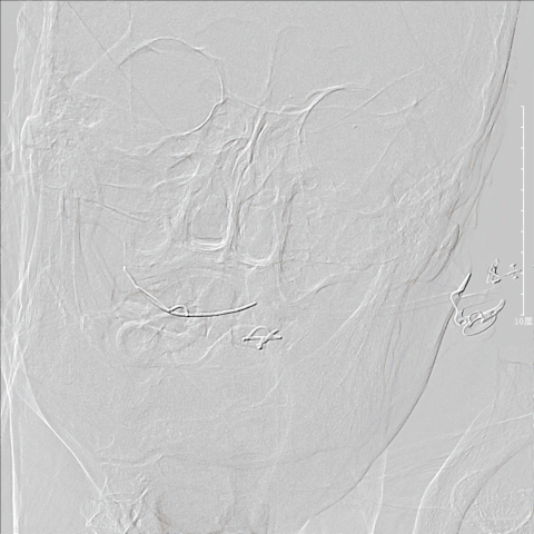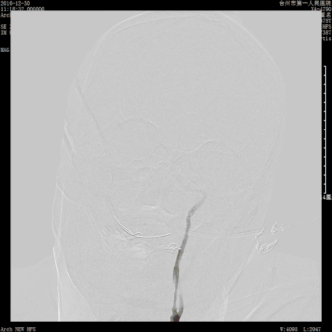 撤回颈总动脉造影,示远端情况尚可,回头造影情况良好。