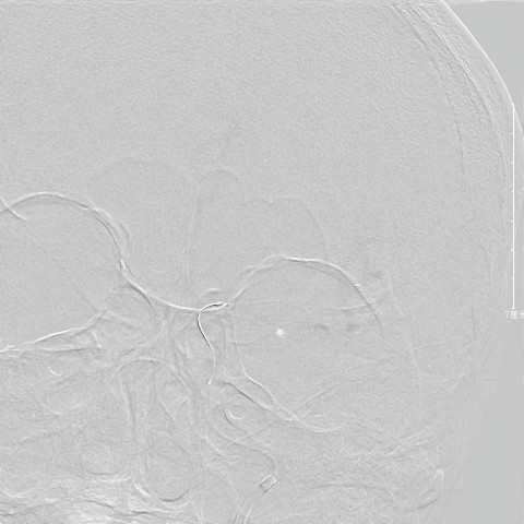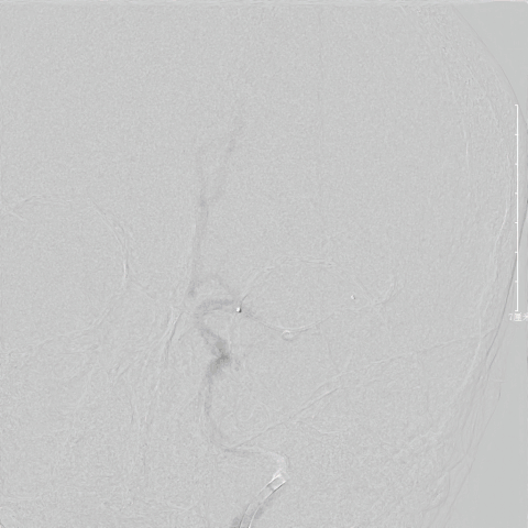 Rebar-18微导管,微导丝至大脑中动脉,行双造影确定血栓长度。