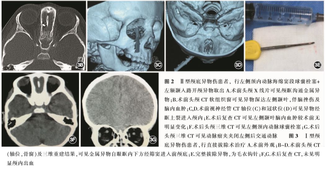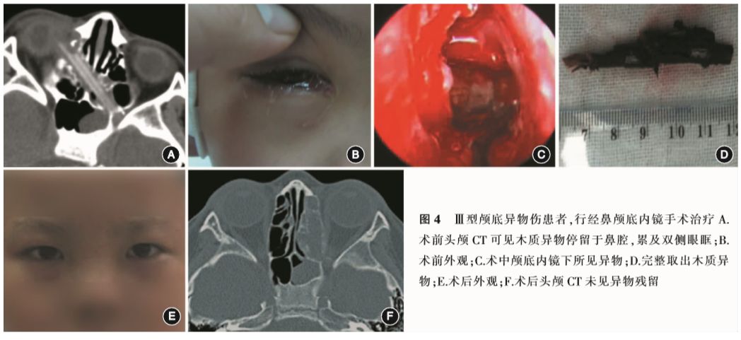 上述3型患者中,由于所受外力大小不同、颅底骨质的阻挡,或伤后人为移动甚至拔除异物,形成异物完全进入、部分进入,或进入后回缩的情况,临床上应以异物到达体内最深点的位置进行分型判定。