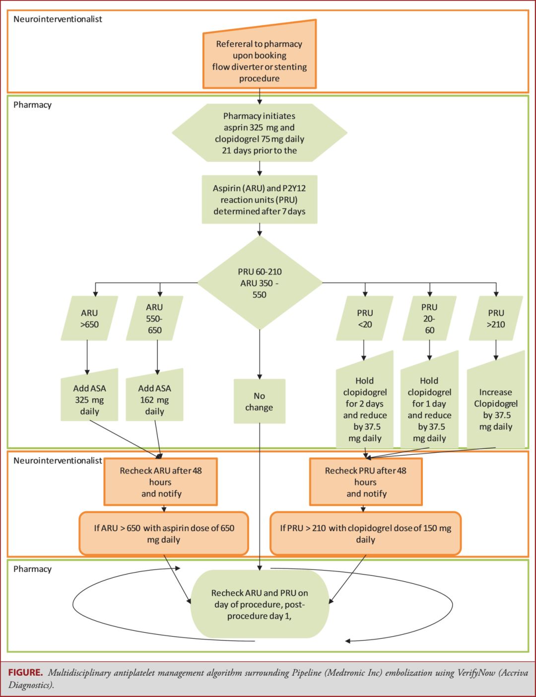 图1.围绕PED的多学科抗血小板治疗执行方案(使用VerifyNow检测系统)