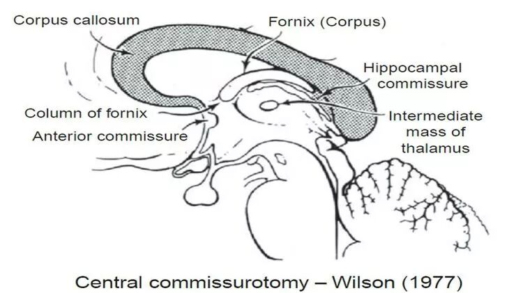 从历史上看,纵裂入路,常常伴随着对中线结构的破坏。熟悉癫痫外科史的同道应知道,在上世纪四十年代,胼胝体切开术逐步应用于癫痫治疗。