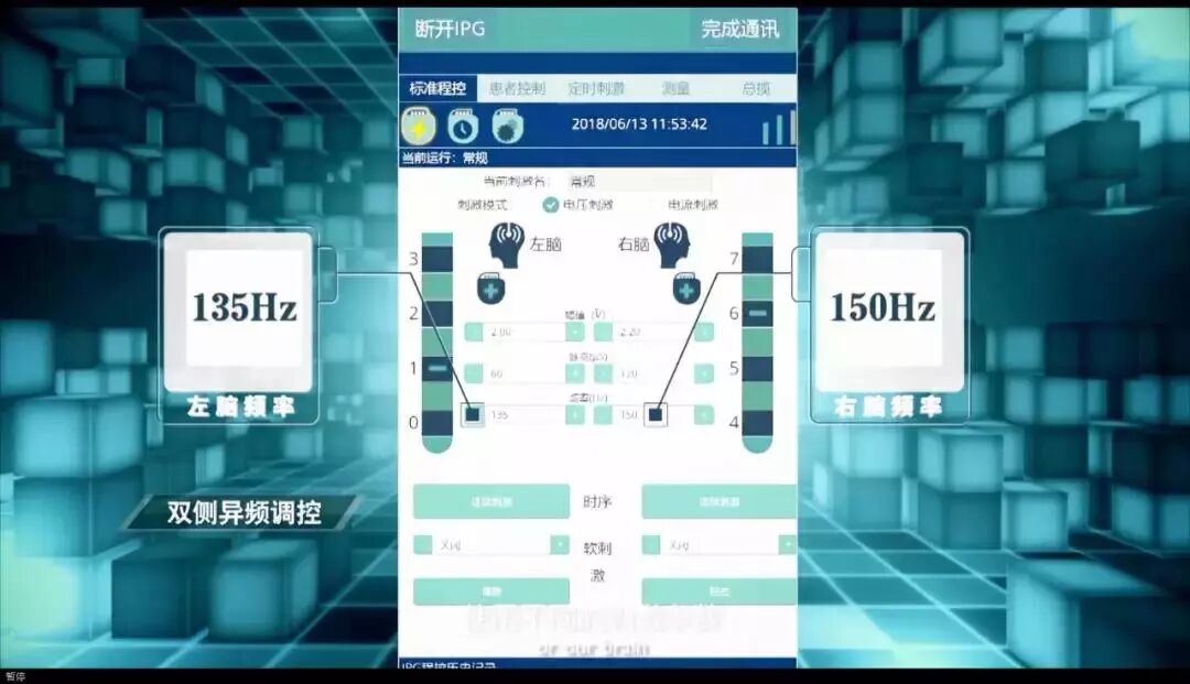 特有的左右脑异频电刺激,能够准确根据左右侧肢体症状不同,设置不同频率,改善左右侧不同症状,减少副作用,达到更好的症状控制和治疗效果。