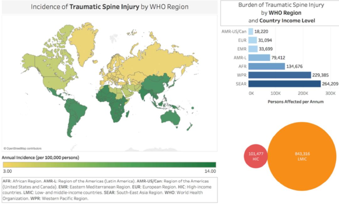 最后作者指出,防治TSI的主要措施是预防交通事故和跌落造成的损伤;全球不同地区TSI的发病率和损伤原因,尤其是对低、中收入国家,还需进一步探讨。