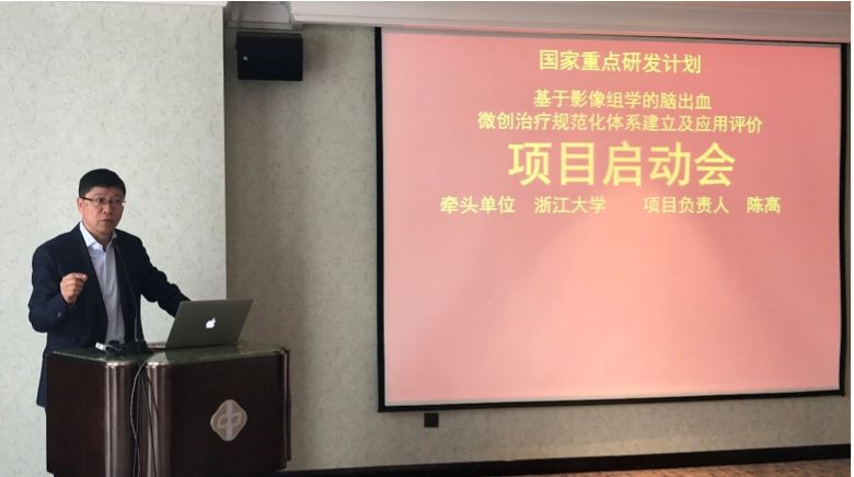 11月23日,由浙江大学医学院附属第二医院陈高教授牵头的十三五国家重点研发计划——“基于影像组学的脑出血微创治疗规范化体系建立及应用评价”项目启动会在浙江杭州召开。复旦大学附属华山医院,中国人民解放军总医院,苏州大学附属第一医院等子项目负责人、项目骨干代表与浙江大学医学院科研办主管领导等参与了会议。这也是浙医二院神经外科继张建民教授牵头的国家重点研发计划——“基于脑机接口的脑血管病主动康复技术研究及应用”实施以来,连续第二年获得国家重点研发计划资助支持。