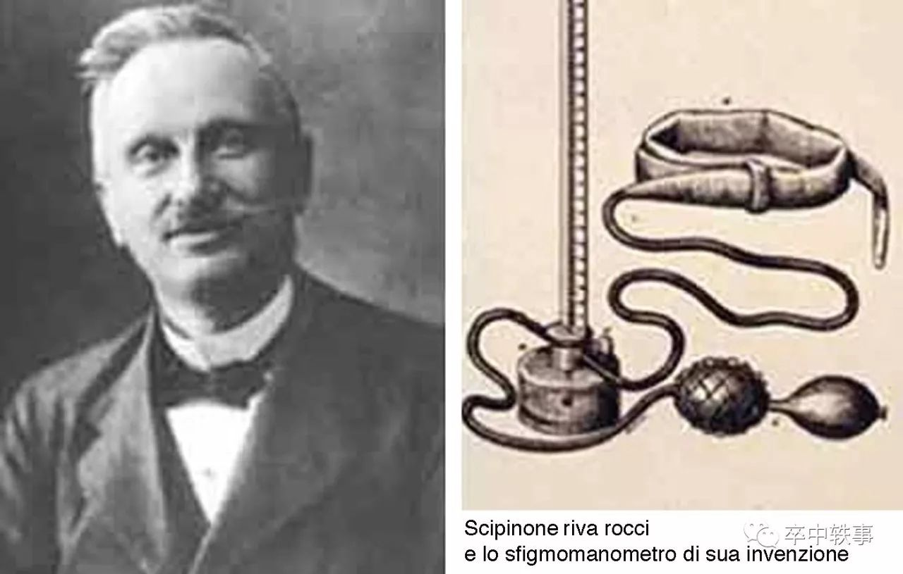 意大利的内科医生 Scipione Riva-Rocci(1863-1937, 上图)在1896年进一步改进了血压计,尤其是他能想到把气囊缠在上臂,测肱动脉血压,方便使用,沿用至今。