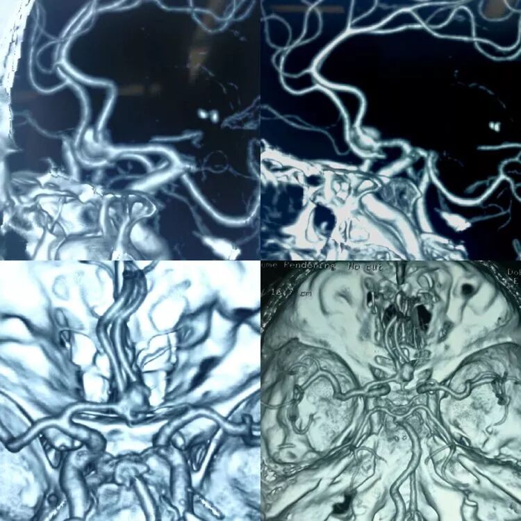 收治病人为SAH病例,CTA提示前交通动脉瘤,瘤顶指向后上方,瘤体较大。