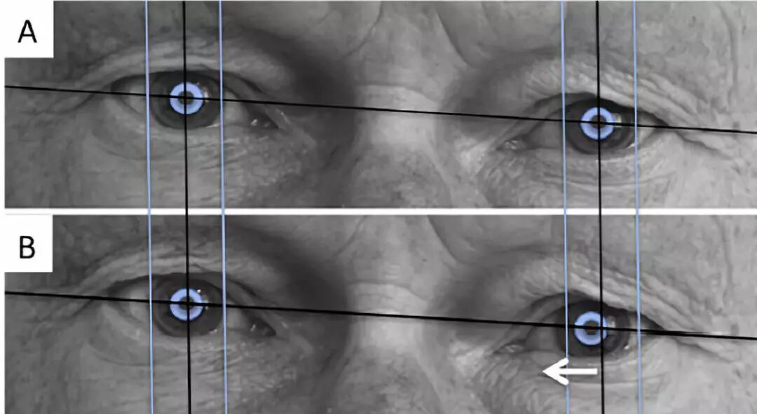 图2. 加大最低触点刺激电量可产生副作用:刺激左眼的动眼神经,使眼球向右侧移动。