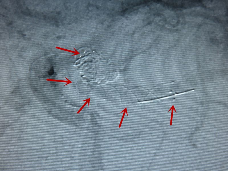 顺利栓塞动脉瘤。