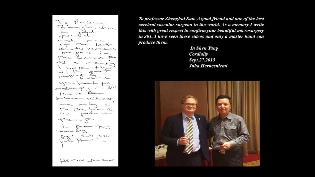 二十年前,许百男教授就敏锐地看到血管架桥处理动脉瘤的必要性与前景。让笔者做研究生课题期间利用实验大鼠练习血管吻合技术,为后来的临床应用打下了坚实的基础。301血管病团队在许主任的带领下,逐步开展了颅内-外、颅内-颅内、高、低流量血管架桥等等临床及科研工作,并在国内各地推广应用,为脑动脉瘤的手术治疗开辟了一片新天地。