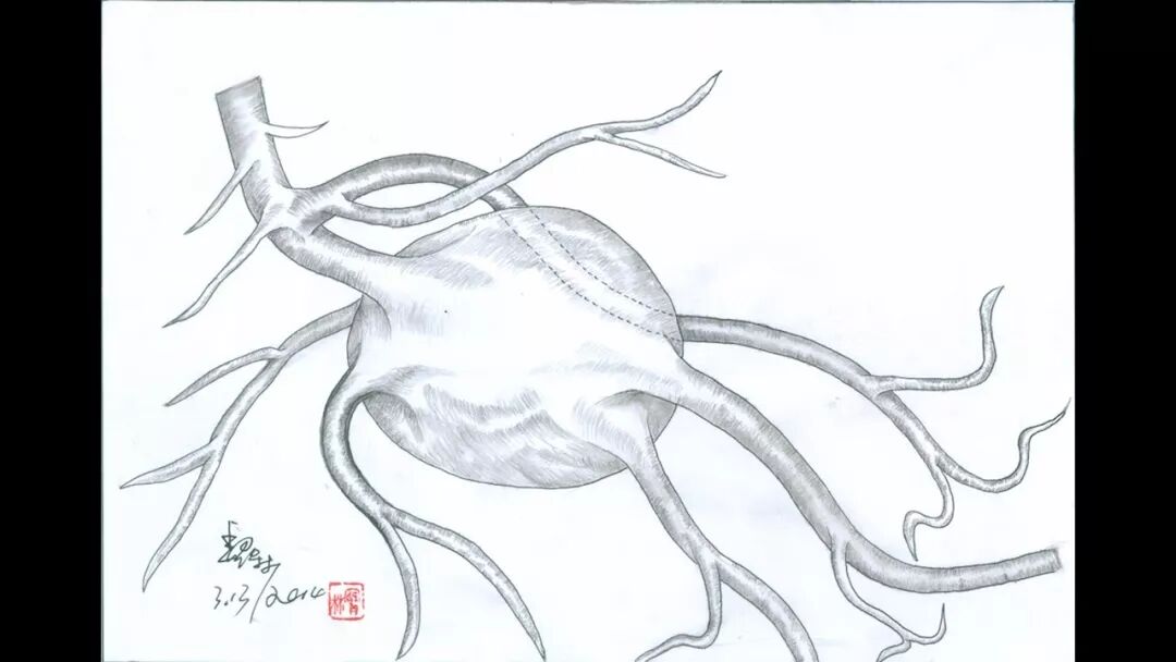 (2)配图精美,动画生动。因为病例复杂,单纯手术录像很多人包括同行看了都一头雾水,为了便于讲解,专门请内蒙古著名画家魏宝林,笔者的岳丈,手工绘制了图谱。画家出手不同凡响。在此基础上,有一定神经外科基础的动漫制作高手白玉名用动画复制了手术的主要过程,让复杂的手术一目了然。每次学术交流都能引起一片赞叹声。