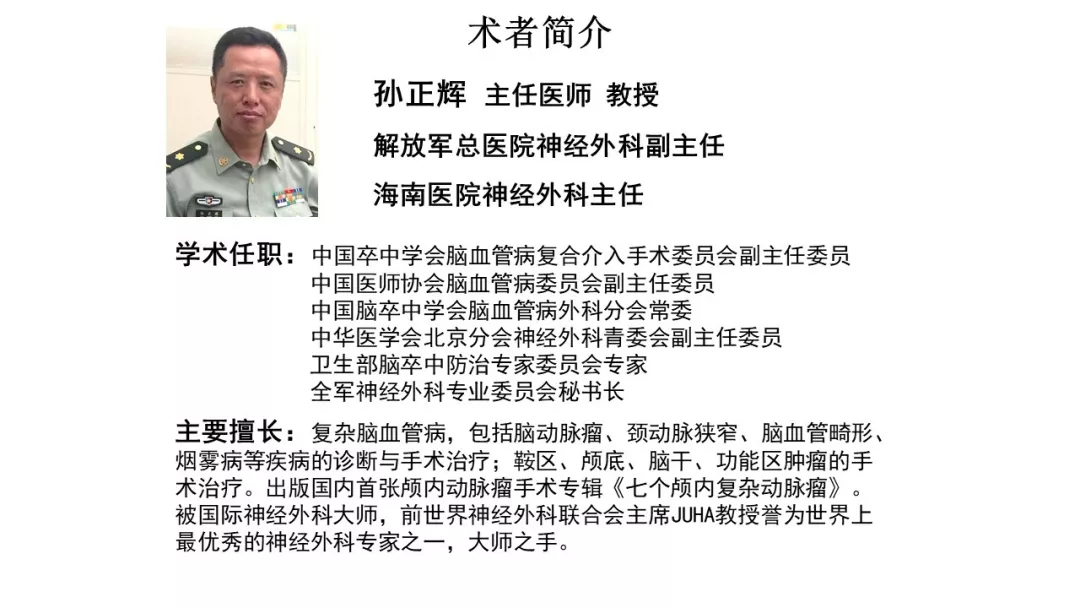 今日与大家分享的是《正海-妙术视界》第一百三十期,由解放军总医院神经外科副主任兼解放军总医院海南医院神经外科主任孙正辉教授带来的精彩手术:“四支血管重建处理复杂大脑中动脉瘤”,欢迎观看、分享。