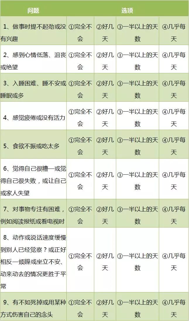 患者健康问卷-9项(Patient Health Questionnaire,PHQ-9)量表。