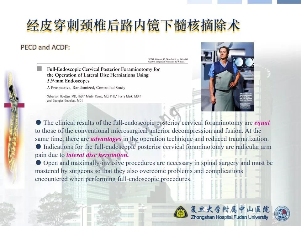 今天为大家带来的是由复旦大学附属中山医院余勇团队带来的脊柱内镜系列(一):经皮穿刺后路颈椎内镜,欢迎阅读、观看!