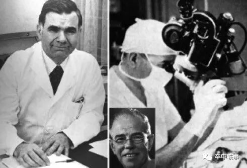虽然显微镜在1876年就用于外科手术,神经外科医生们却一直等到1957年才由洛杉矶的 Theodore Kurze (下图) 第一次把显微镜用于神经外科手术。