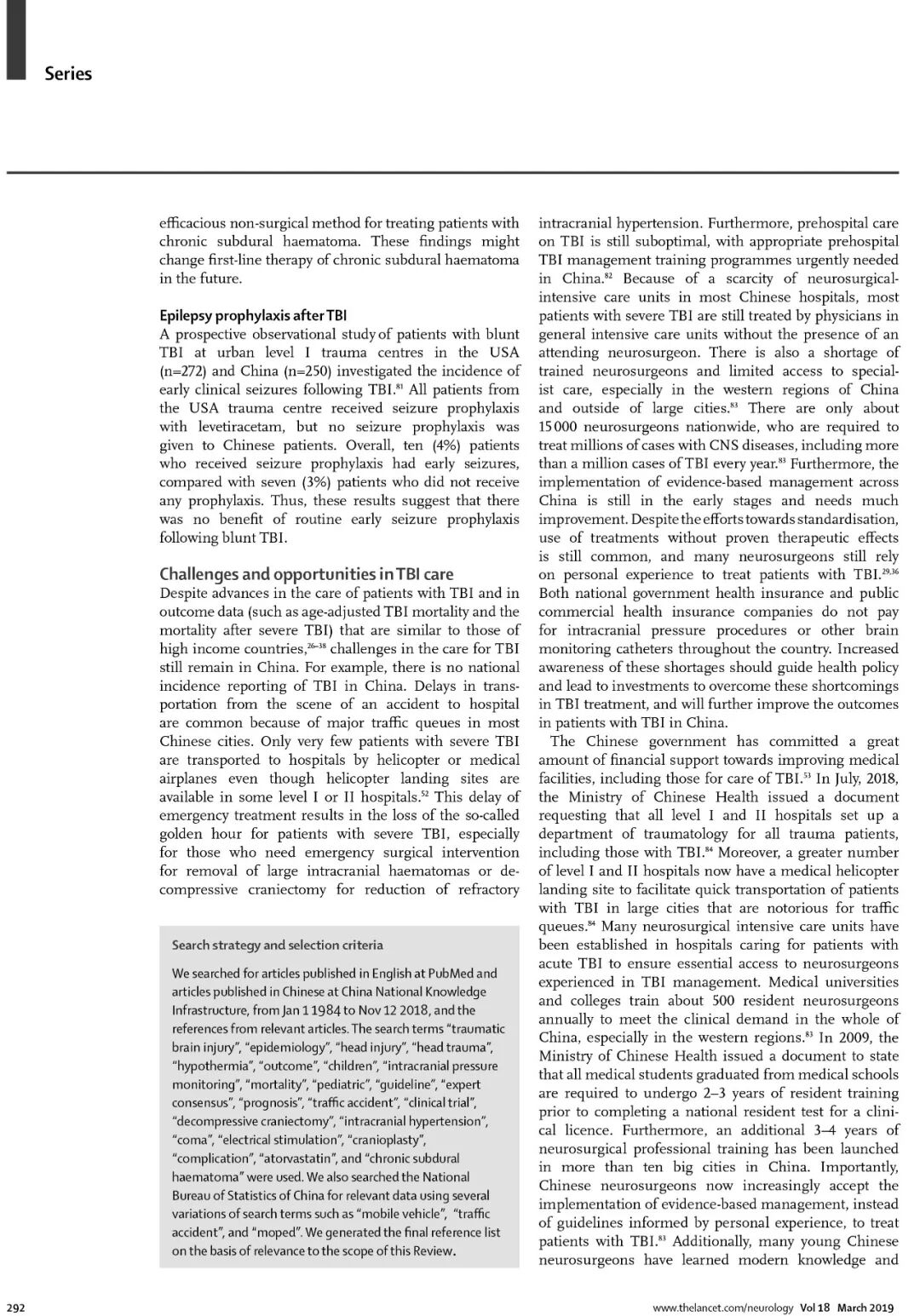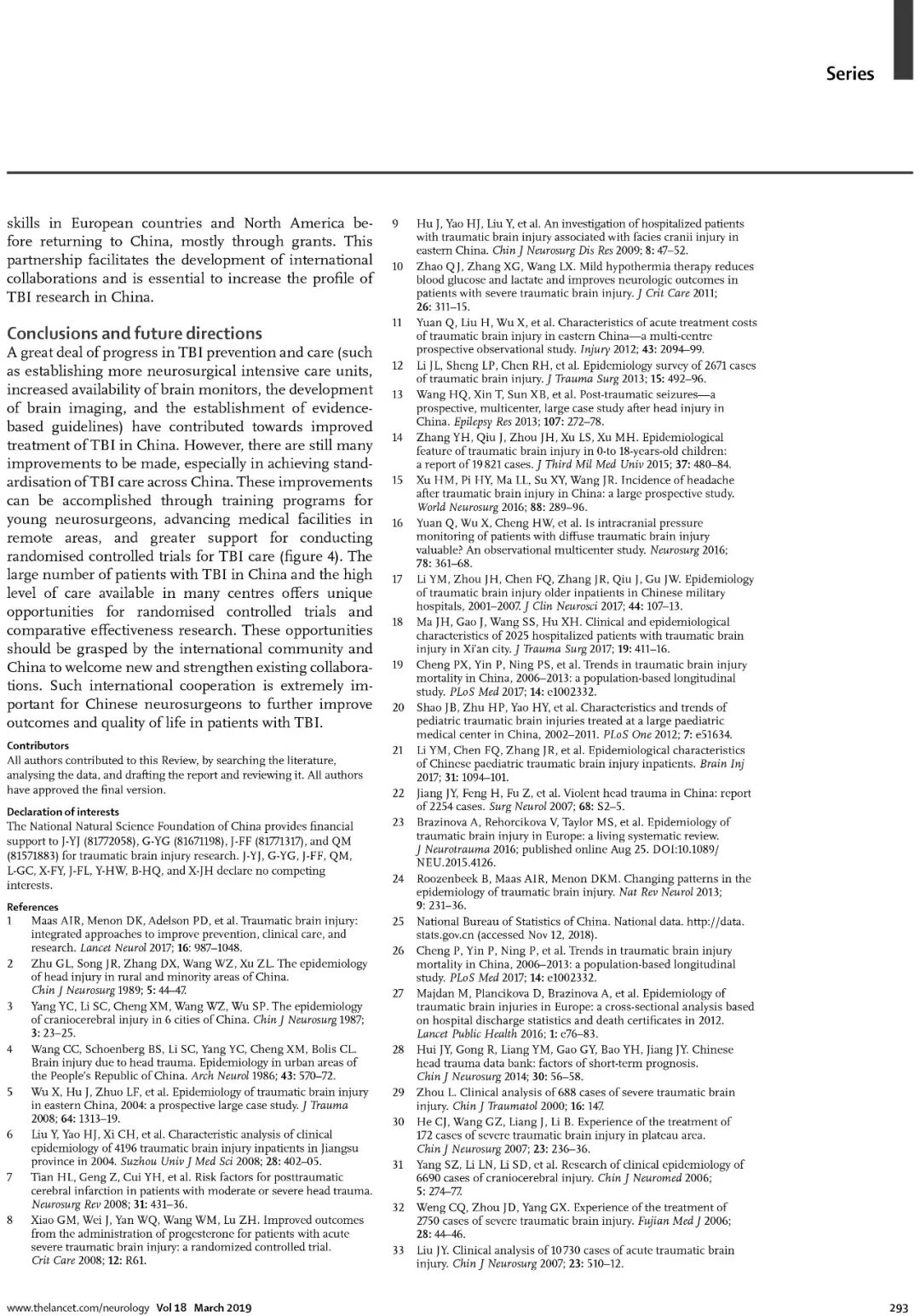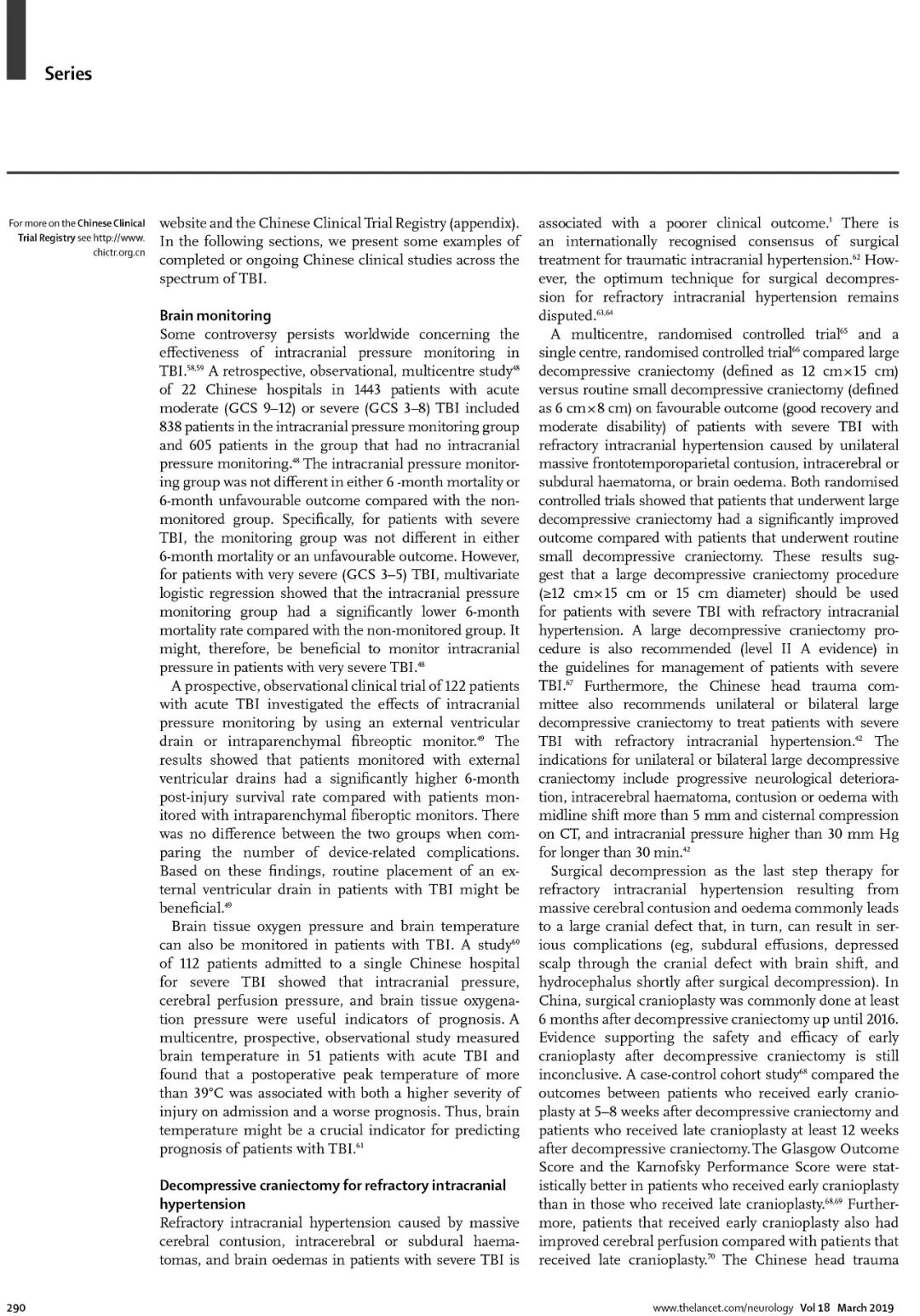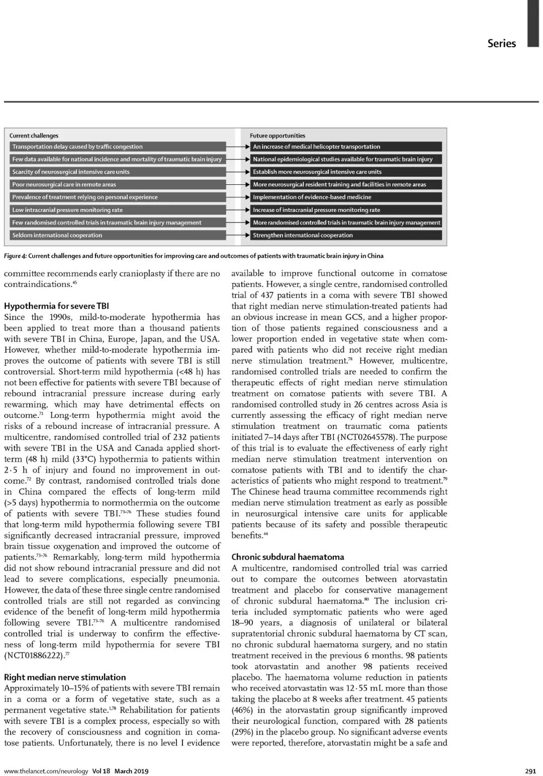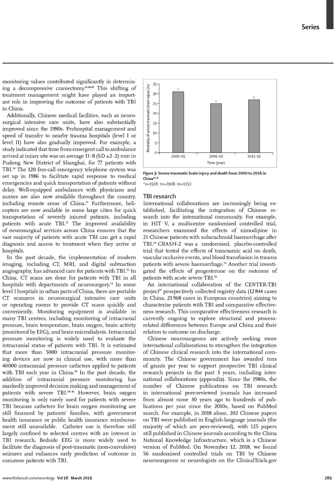该论文在向全世界展现了中国在颅脑创伤诊治取得成就的同时,也指出我国颅脑创伤救治存在的困难和今后努力方向。 例如,颅脑创伤患者空中转运很少导致抢救时机的延误、神经外科重症监护病房普及率低、临床救治仍然不够规范、地区救治水平不平衡、高水平临床随机对照研究不多等。中国需要进一步提高神经外科重症病房危重病人的医护水平、加强神经外科医师专科培养能力、积极开展国内外高水平随机对照研究和疗效比较研究。