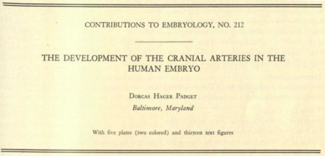 Padget发表的“人胚胎脑动脉发育”论文(Padget, 1948)。