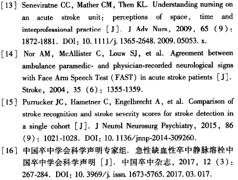 急诊分诊工作必须在5min内完成,由急诊分诊护士采用FAST量表对到诊患者进行简单评估,如发现任何一项异常,应考虑为脑卒中,并进行快速分诊[14-15],点击绿色通道启动键,给患者佩戴“绿色通道/抢救”字样标识,带领患者快速就诊。
