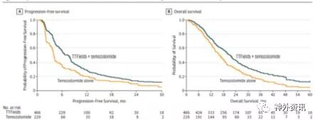 作者指出,在术后标准化放化疗的胶质母细胞瘤患者随机临床试验的最后阶段, 采用TTFields联合替莫唑胺化疗,与单一替莫唑胺化疗相比,前者的无进展生存期和总生存期获得显著改善,与前面的中期分析结果相一致。
