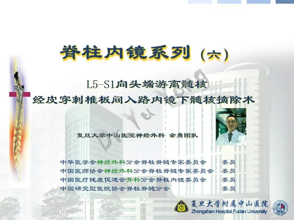 今天为大家带来的是由复旦大学附属中山医院余勇团队带来的脊柱内镜系列(六):经皮穿刺椎板间入路内镜下髓核摘除术,欢迎阅读、观看!