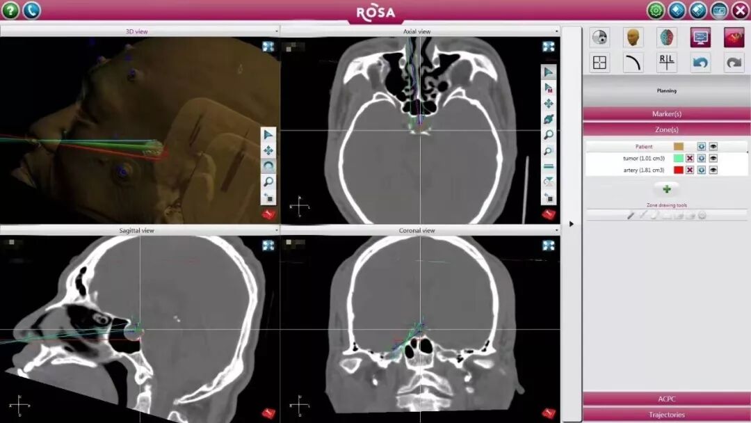 据悉,该手术患者罹患垂体瘤多年,肿瘤对两侧海绵窦等重要结构都有侵袭,此次手术的目标是保留正常功能的前提下,将肿瘤全部切除。青岛市市立医院神经外科主任李洛带领“机器人导航小组”经过周密的准备和计算机模拟计划,在ROSA机器人的辅助下,术中精准定位肿瘤与周边大血管的位置关系,引导手术方向,确保全切肿瘤,避免位于“死角”位置的肿瘤残留。术后患者恢复良好无并发症,预计3日后即可出院。