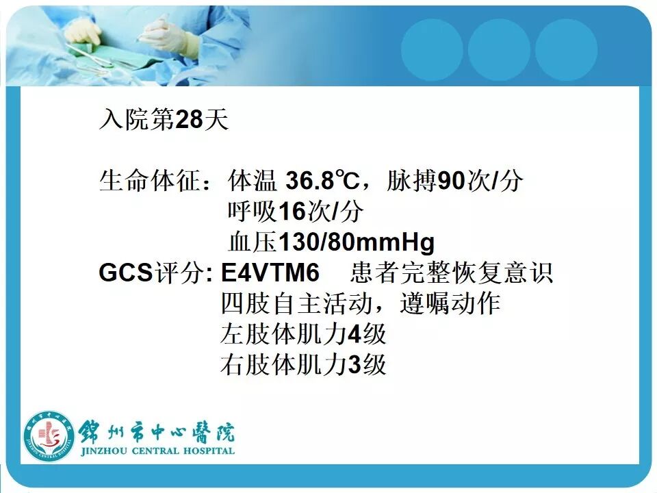 7. 患者预后评估只使用GOS评分有些不足,如能结合用GOS评分、认知功能量表或DRS评分(脑外伤残疾分级评分),将能更加准确评估患者的预后。