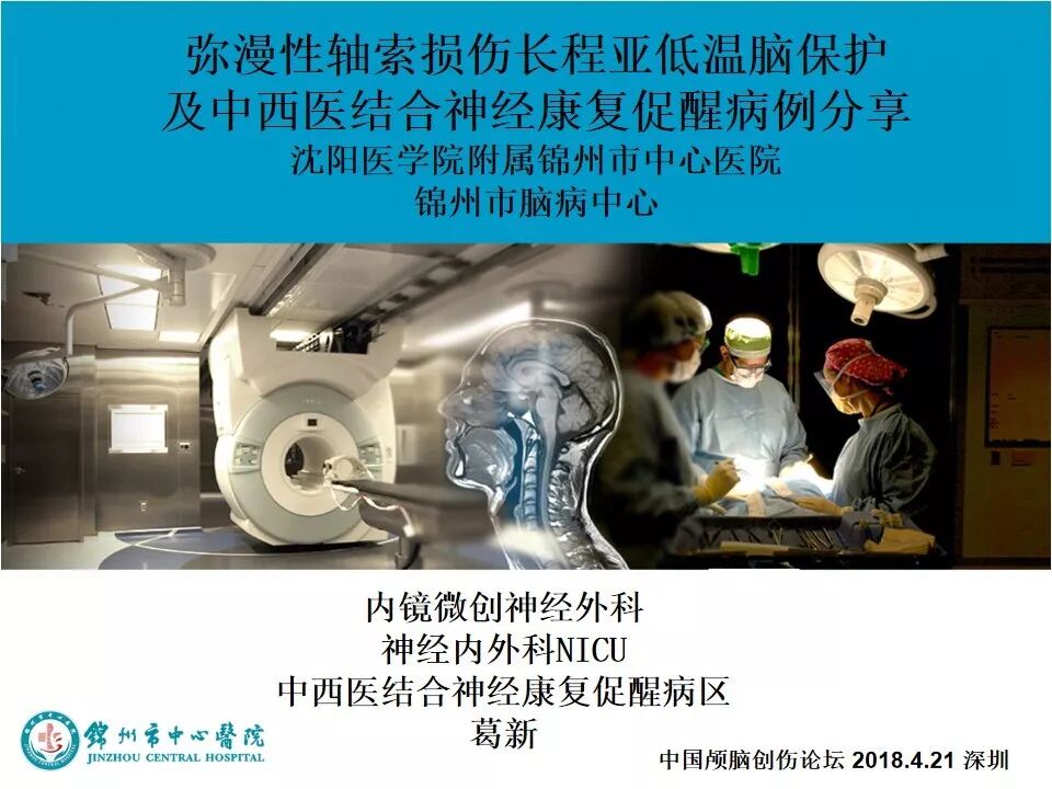 今天为大家分享的是《颅脑创伤-神经重症病例周刊》第108期,由锦州市中心医院神经重症医学科NICU主任葛新副教授带来的:弥漫性轴索损伤长程亚低温脑保护及中西医结合神经康复促醒病例分享,中国人民解放军联勤保障部队第904医院副院长兼神经外科主任、“神外资讯中国颅脑创伤专家组”委员王玉海教授对病例作出了精彩点评,欢迎观看、阅读。