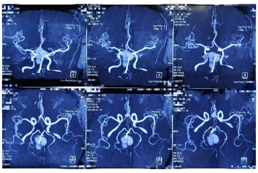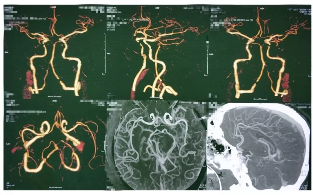 入院后完善CTA,DSA等检查提示颅内多发动脉瘤: